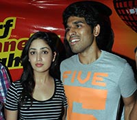 Sirish and Yaami Gautam at Jumpak Jumpak Thumpak Thumpak Flashmob at Prasads Multiplex, Hyderabad