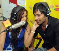 Manchu Manoj and Deeksha Seth at Radio Mirchi Studios, Hyderabad