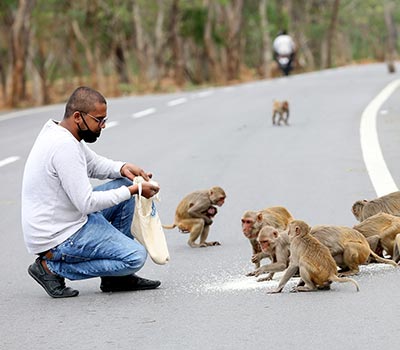 Hyderabad Lockdown: Volunteers Feed Hungry Monkeys