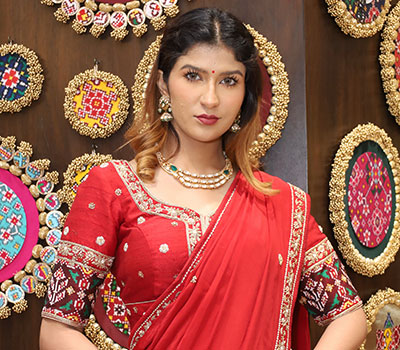 Anusri Aira Stills in Red Saree, HD Gallery